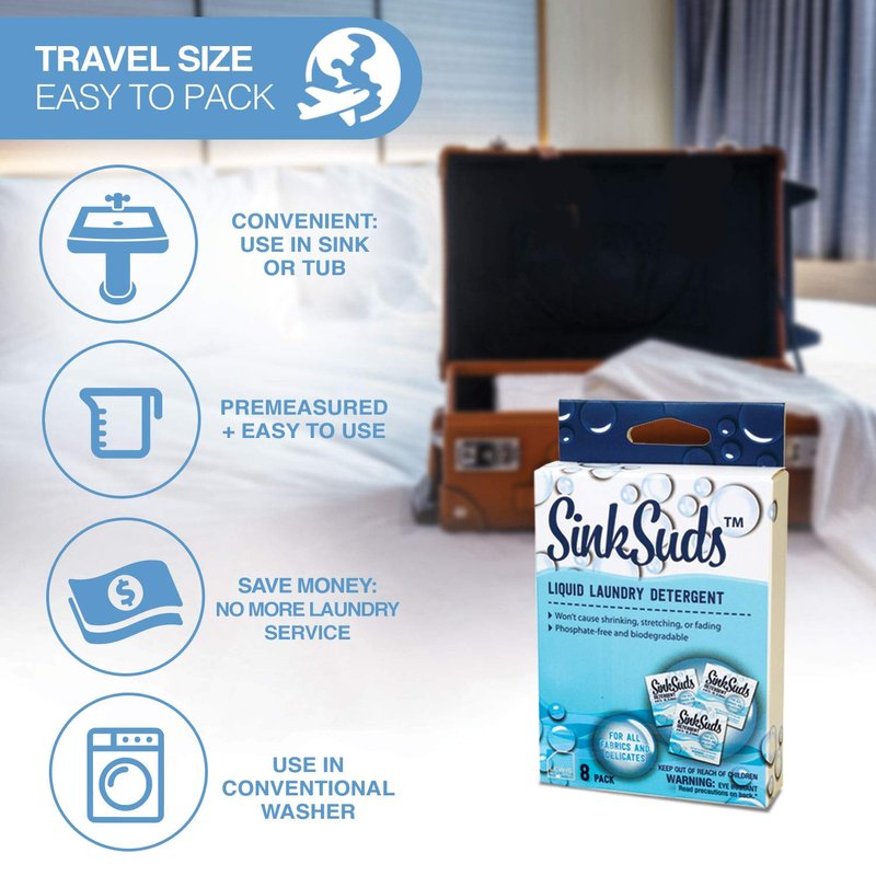 - A TRAVEL ESSENTIAL: SinkSuds is the perfect travel size toiletry no matter what type of adventure you go on. Use it for vacation, business trips, cruises, backpacking, camping, or any extended hotel stay.