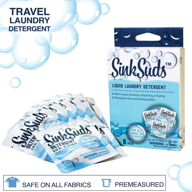 SinkSuds Laundry Detergent | Travel Size Liquid Soap | TSA Compliant | Safe For All Fabrics | 8 Packets