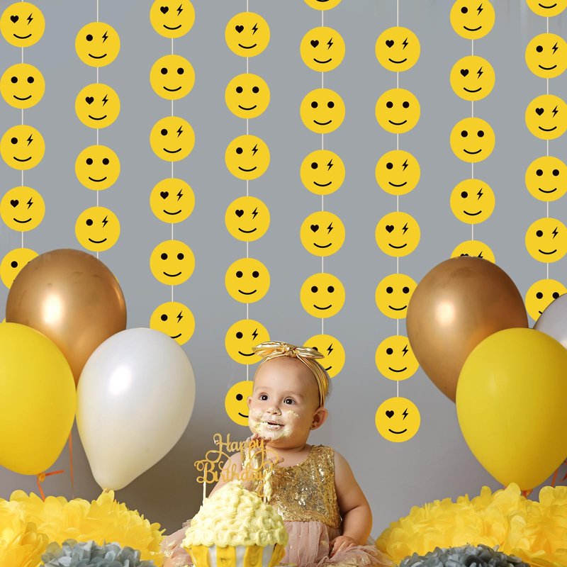 - Quality Material: our one happy dude birthday decorations are made of quality paper; They are colorfast and odorless meaning their vibrant colors remain intact for a prolonged period, adding a splash of color to your home or party; These yellow smile garland decorations are reusable, lending delightful visual appeal, suitable for any theme party