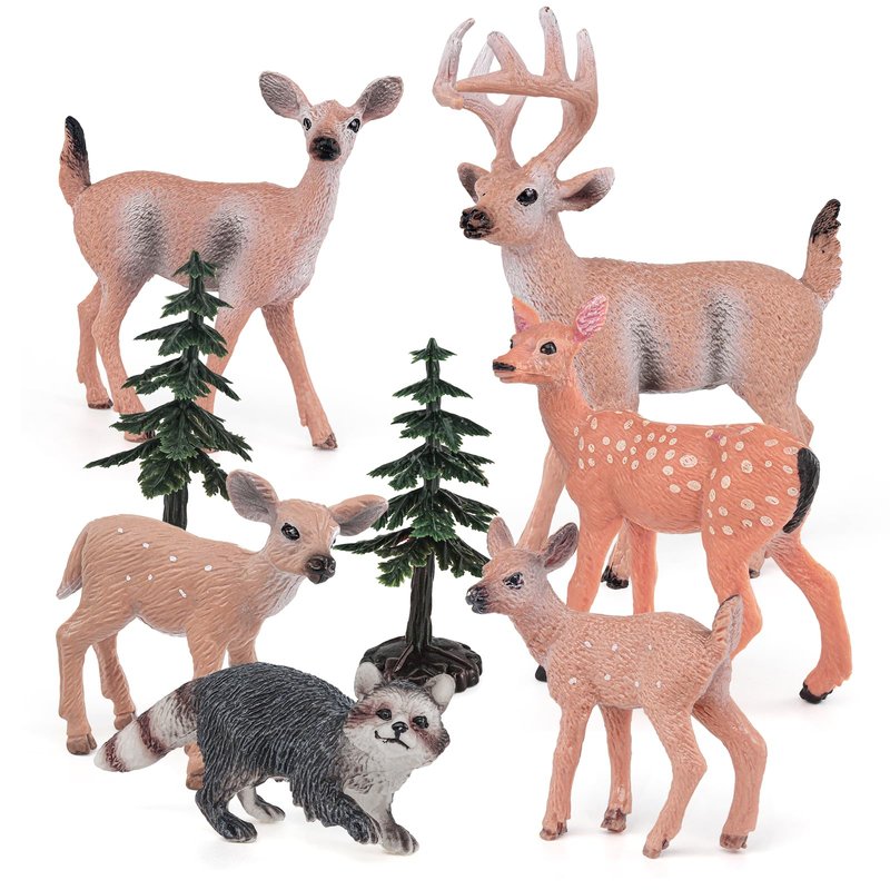 Sinmelechtra 8PCS Wildlife Model Figures Set White-Tailed Deer Merganser Raccoon Tabletop Ornament Party Favors Toys for Boys Girls Kids