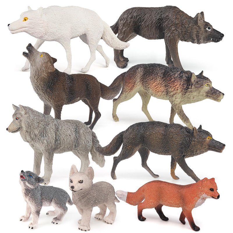 Sinmelechtra 9PCS Wildlife Wolf Model Figures Set Arctic Wolf King Siberian Wolf,Green Wolf Tabletop Ornament Party Favors Toys for Boys Girls Kids