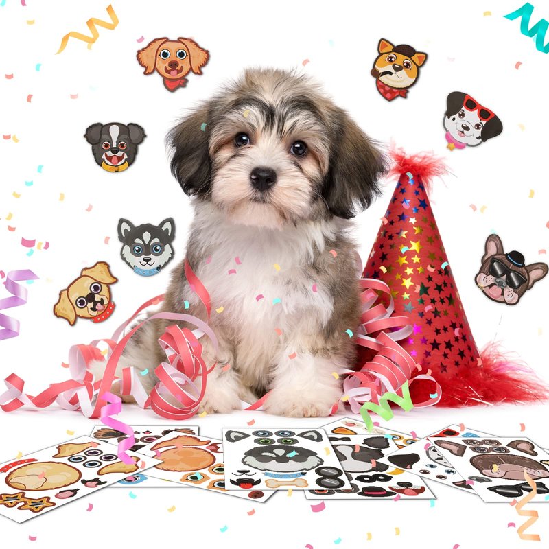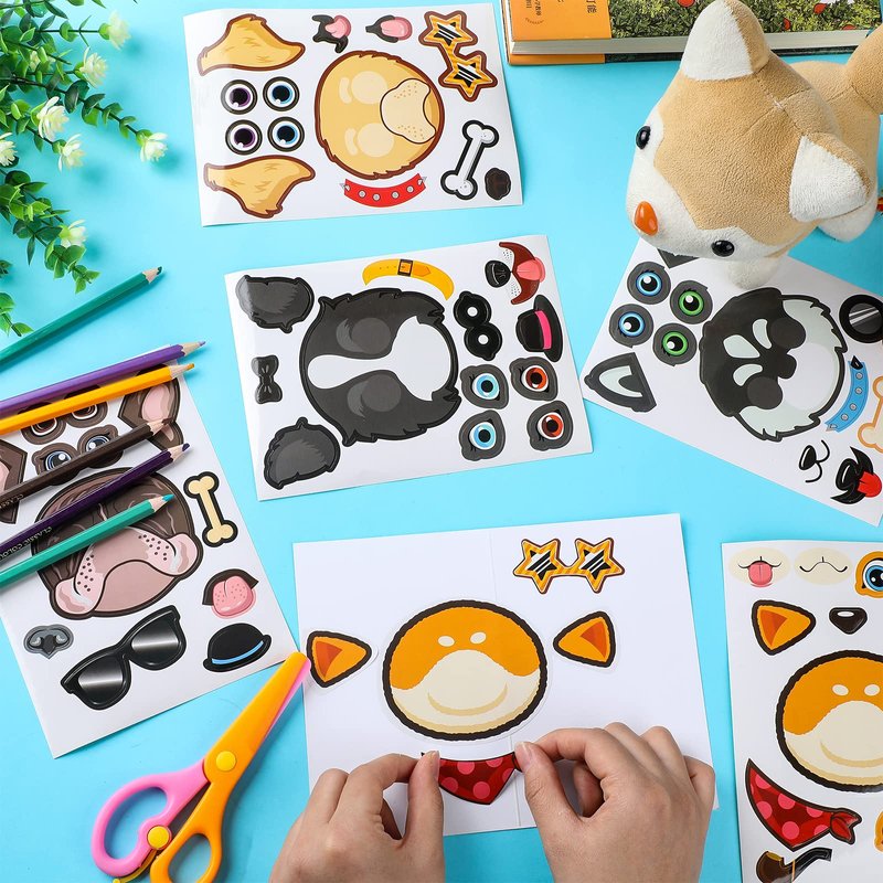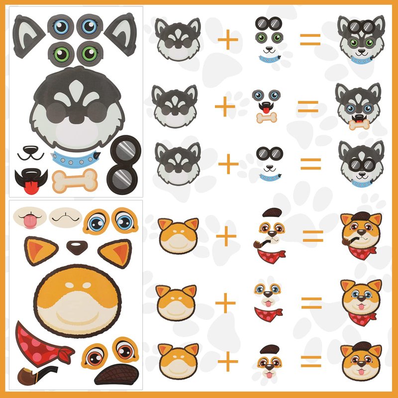 Sinmoe 48 Sheets Dog Stickers Make a Face Make Your Own Dog Stickers Puppy Party Favors Stickers Cute Animal Stickers for Kids Birthday Gift DIY Craft Zoo Farm Themed Party Supplies Teacher Rewards