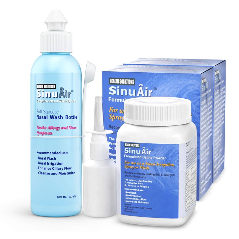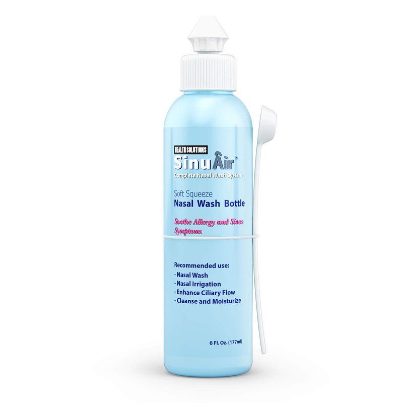 SinuAir gently washes away mucus, pollutants, dust and pollen. Convenient for traveling, the EZ Squeeze Nasal Wash Bottle and SinuAir can be used anywhere at any time. Recommended by leading health care professionals for sinus and allergy relief - including sinus infection, sinusitis, and post nasal drip.
