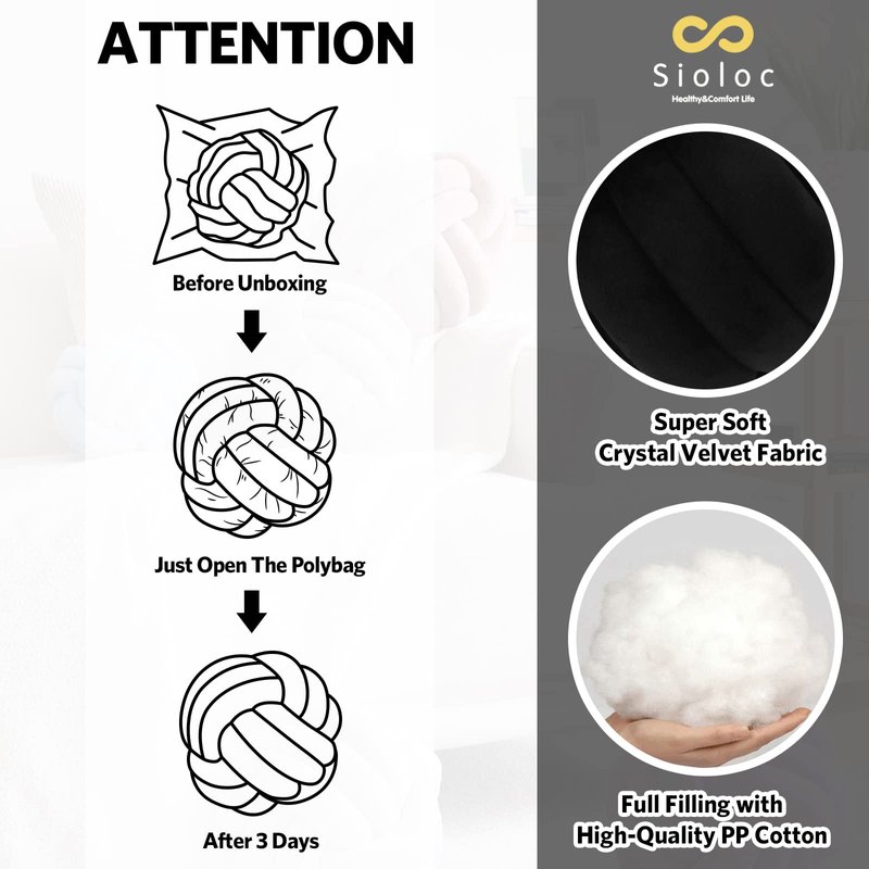 - 【Material】Sioloc round ball pillow is made of soft plush fabric filled with PP cotton so as to offer you and your family comfortable feeling every single time you hold this plush knot ball pillow in your arms,each cushion is hand sewn, stuffed and knotted with quality and kids safe materials.