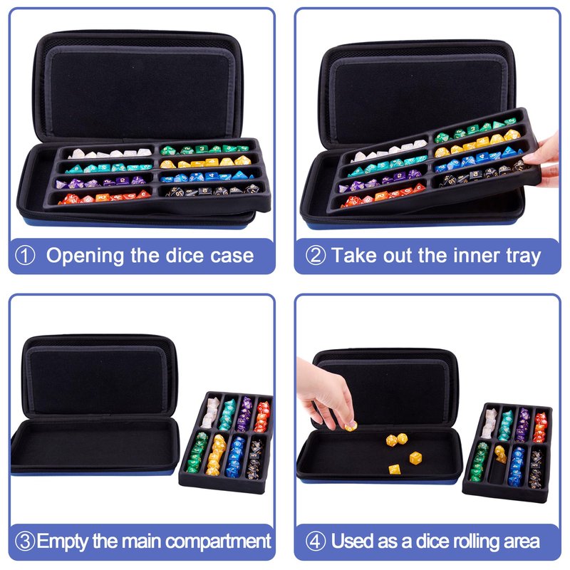 - Storage and Rolling: The pre-slotted EVA dice case can hold up to 8 sets DND dice, detachable design allow the empty main compartment area can be used as a dice rolling tray