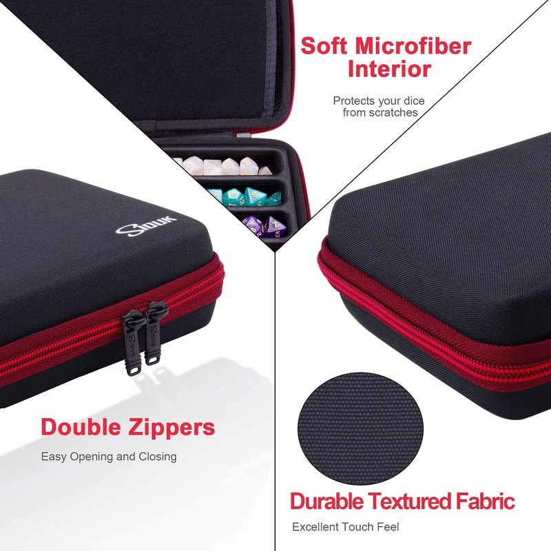 - Storage and Rolling: The pre-slotted EVA tray on the dice storage case can hold up to 8 sets DND dice, detachable design allows the empty main compartment area to be used as a dice rolling tray.