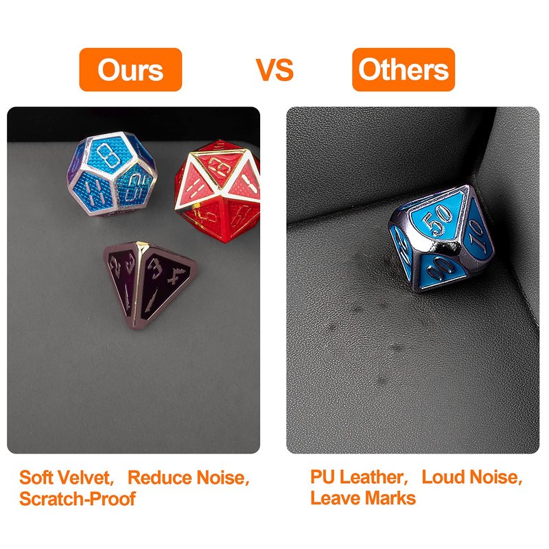 - Practical and durable - The inner part of the dice rolling tray made of gray velvet with soft handfeel, which can reduce noise during game playing time and protect your tables, the outer part the dice tray made of black fully PU leather, delicate texture, great physical feel and easy to clean
