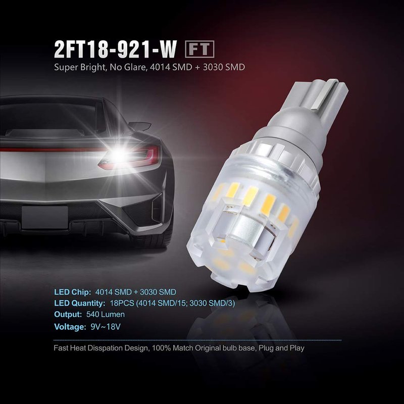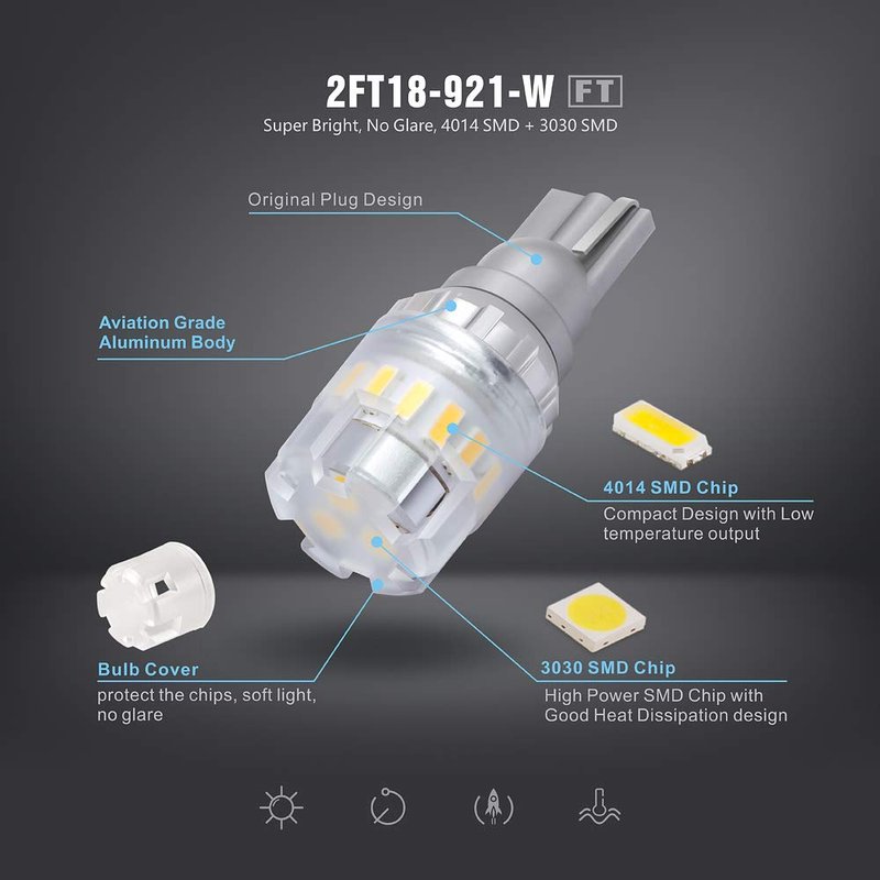 SIR IUS LED - FT- 921 922 579 LED Canbus Reverse Backup Trunk Light Bulb for Car Truck Super Bright High Power 3030+4014 SMD White 6500K Pack of 2