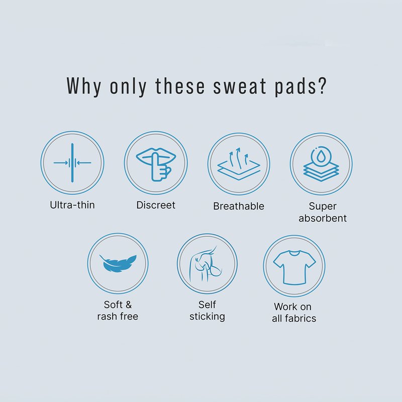 We all sweat, but, few of us have real sweating issues. We now have Sirona’s ‘Underarm Sweat Pads’ to become your new best friend. With our easy to use, disposable pads you don’t need to worry about embarrassment. Just put Sirona’s Sweat Pads’ on the garment and forget . These are simple to use garment liners and come with a self-adhesive glue. Just inverse your shirt and stick the sweat pad on the underarm area.