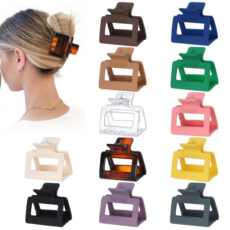 Sisiaipu 2 Inch Medium Hair Claw Clips 12 Pcs Square Hair Clips for Thin Hair Matte Nonslip Acrylic Banana Jaw Clips Bulk Hair Accessories for women and Girls - Basic