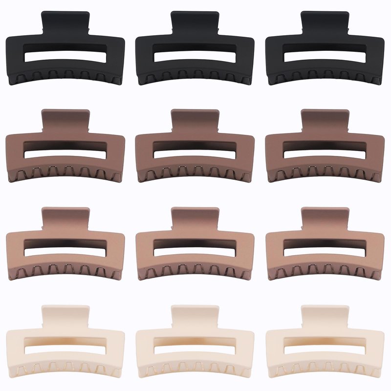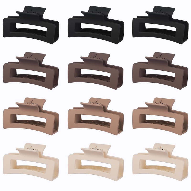 Sisiaipu 3.5 Inch Medium Hair Claw Clips 12 Pcs Square Claw Clips for Thick and Thin Hair Rectangular Rectangle Hair Clips Jaw Clips Bulk Hair Accessories for women and Girls - Brown