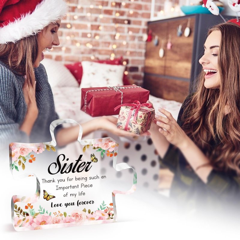 Sisters Gifts from Sister-Delicate Sister Birthday Gifts-Engraved Acrylic Puzzle Piece 3.9x3.3-Thanksgiving New Year Birthday Gifts for Sister, Ideas