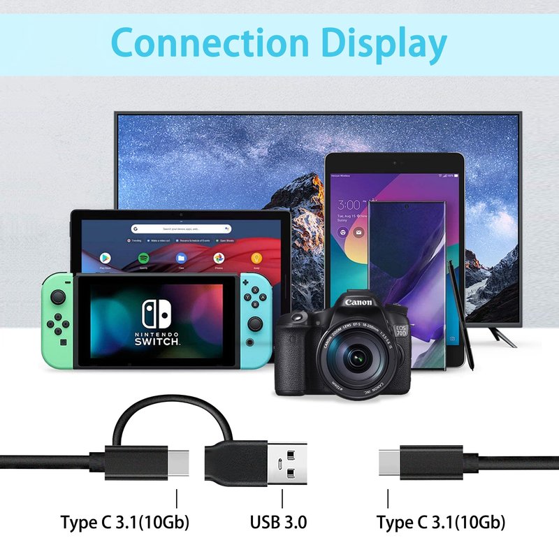 - 【2in1 design charging cable】 The usb c 60W fast charging cable combines two charging heads into one. The short usb c cable connects the hard disk for data transfer up to 10Gbps. You only need to carry one cable when connecting multiple devices, it doesn't take up space in your backpack or car, and the short cable fits in tight places and reduces the burden of carrying.