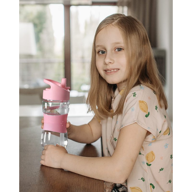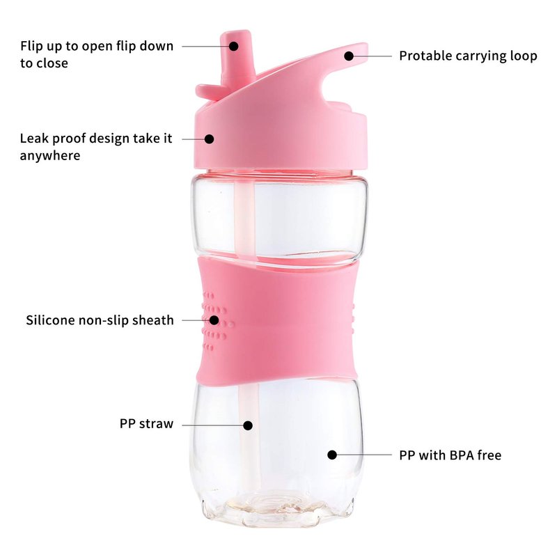 Sivaphe Kids Water Bottle with Straw 12 OZ BPA-Free Tritan Plastic Little Girls Small Clear Drinking Bottle for School Time Pink