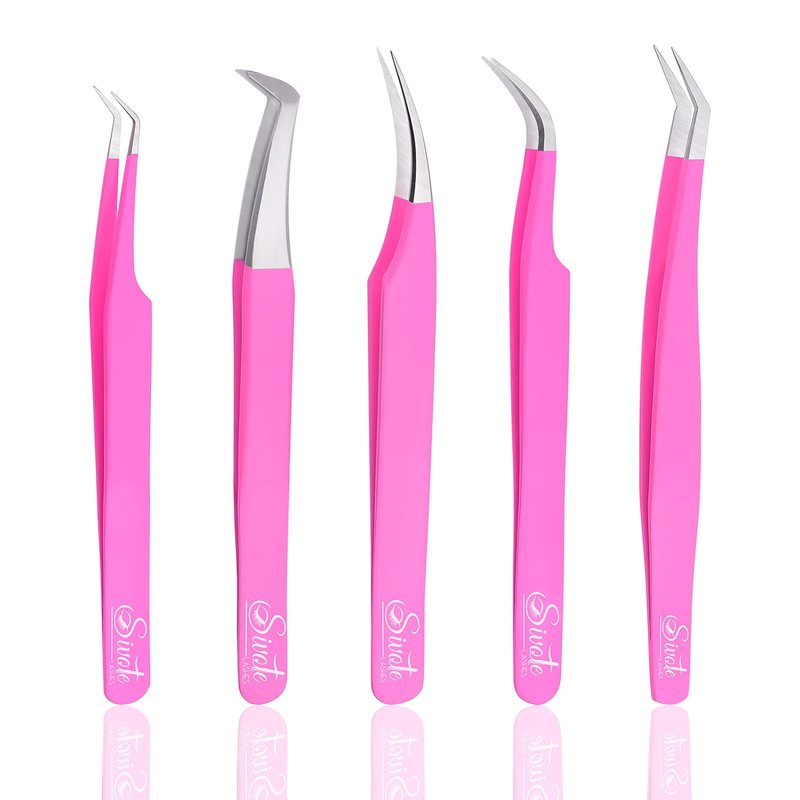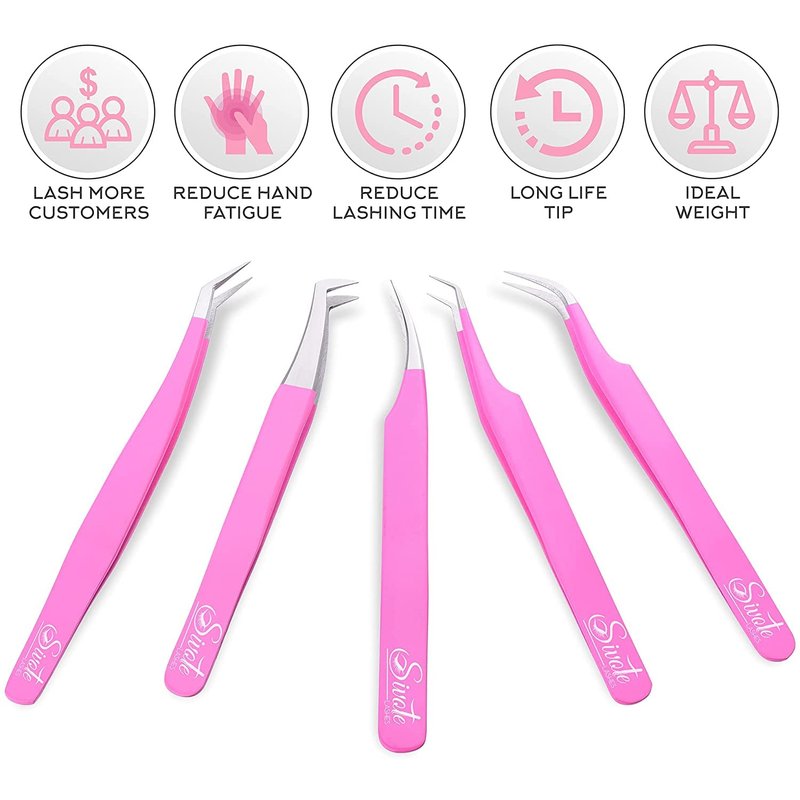 SIVOTE Eyelash Extension Tweezers for Classic & Volume Lashes, 5-Pack, Pink