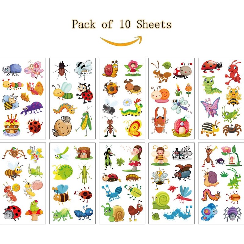 - 【10 different sheets】The package includes 10 different sheets of Insects Tattoo Stickers for kids, boys and girls.