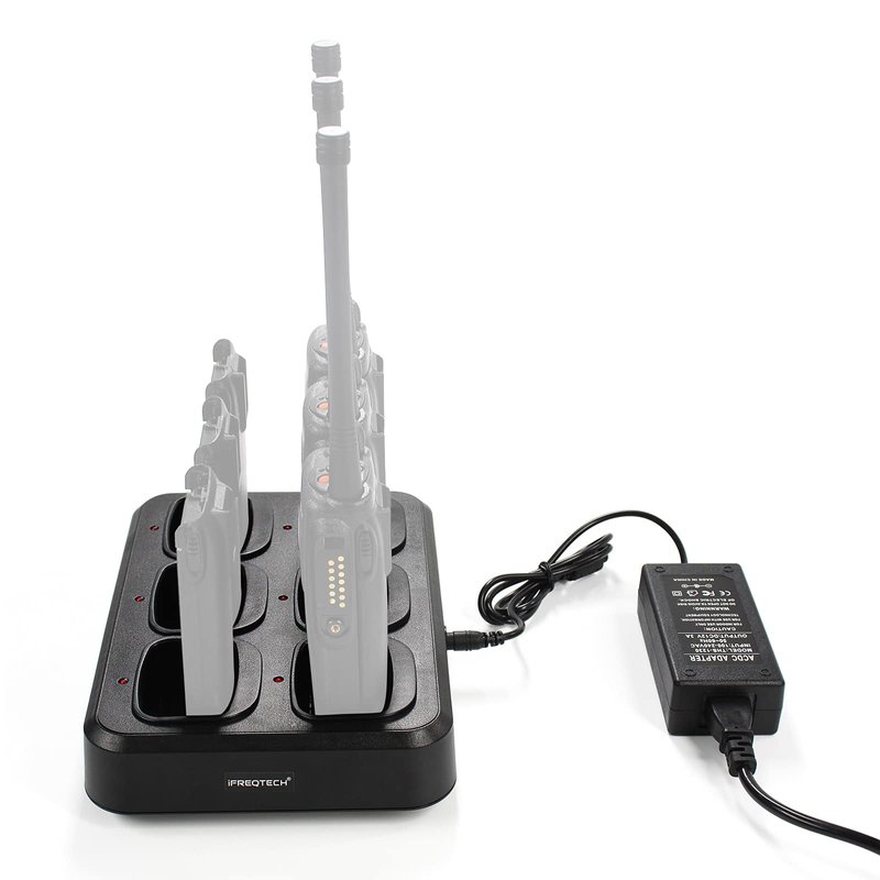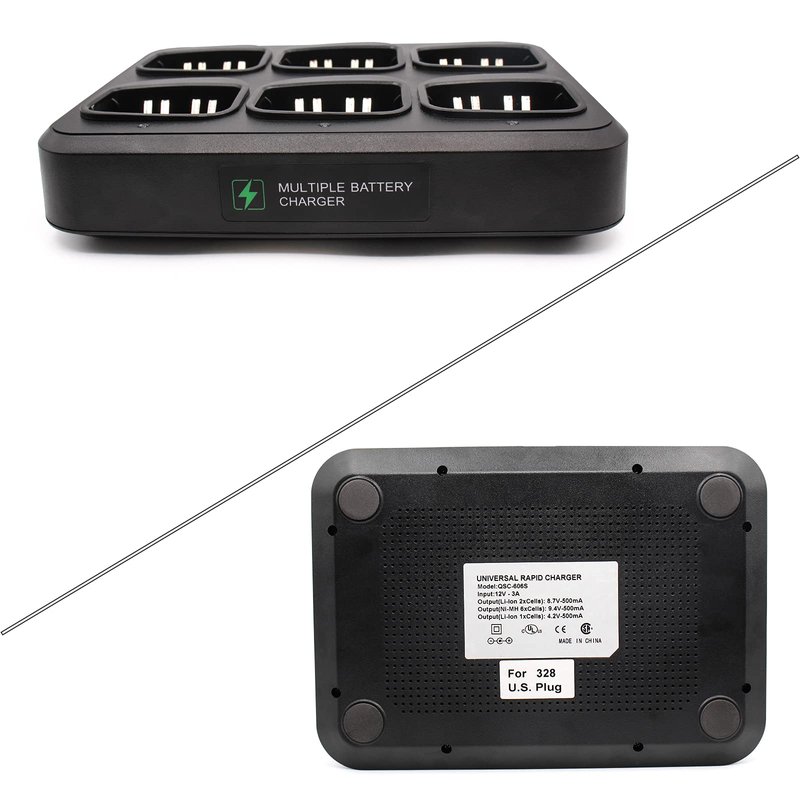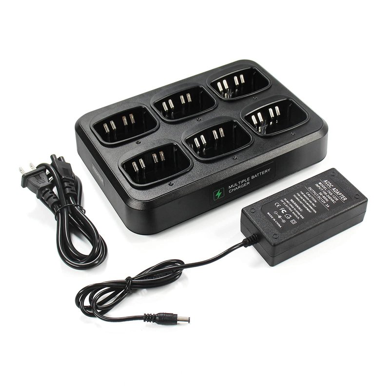 - ►6 in 1 walkie talkie charger can supply power to six batteries or six radios simultaneously,able to meet the needs of use for large-scale groups or personal activities.