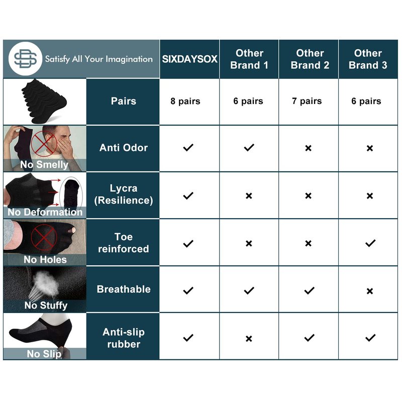 - High quality material: SIXDAYSOX mens no show socks are made of 75% cotton,22% nylon, 3% spandex. Hand washing is recommended.