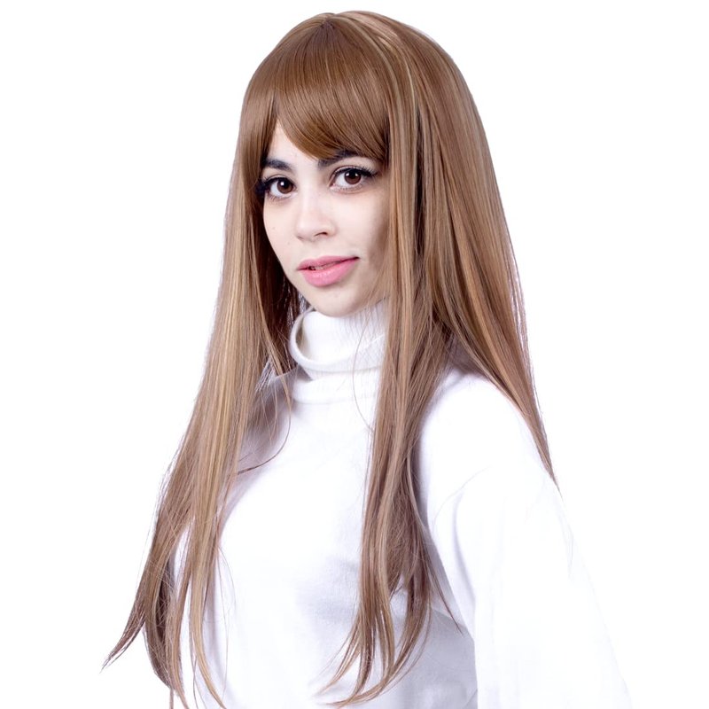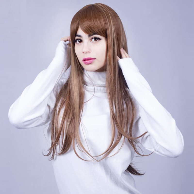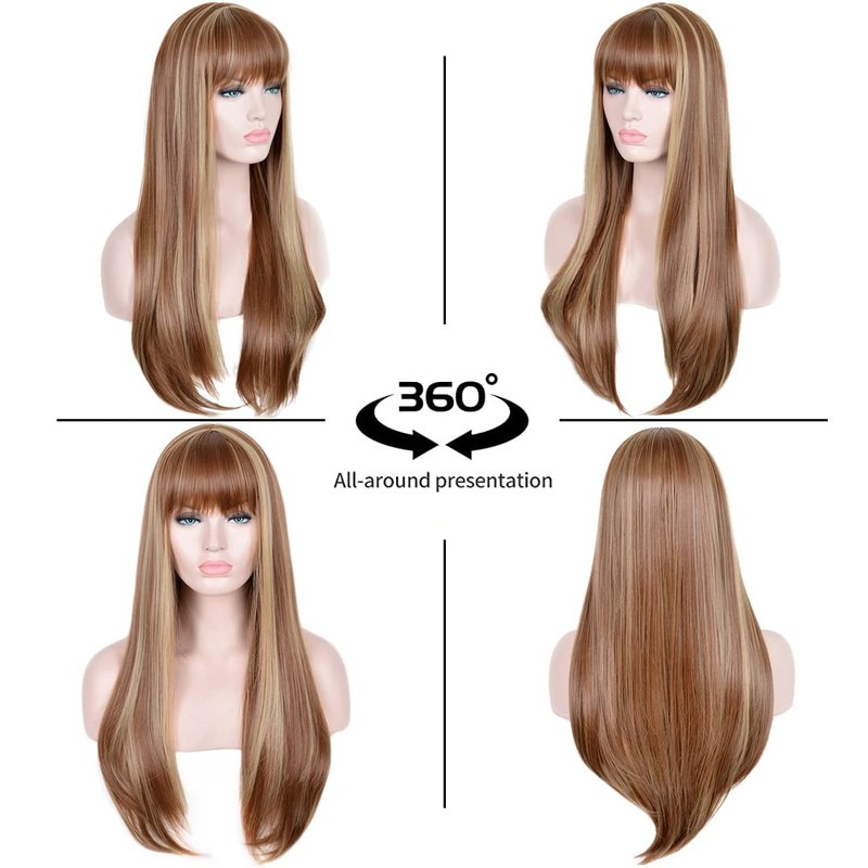 SiYi Brown Wig,27inch Long Natural Straight Wigs with Bangs for Women,Halloweeen Costume Cosplay Wigs Natural Daily Party Wigs Cover for Ladys