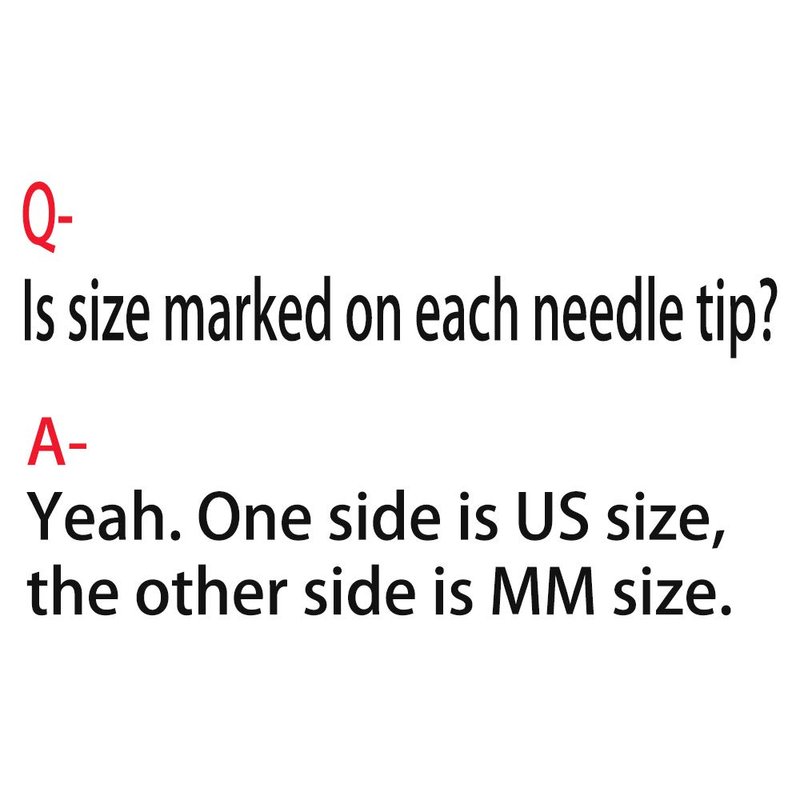 Both MM and the US sizes are printed on the needles- It saves the hassle of looking up which size or millimeter needed for specific patterns.