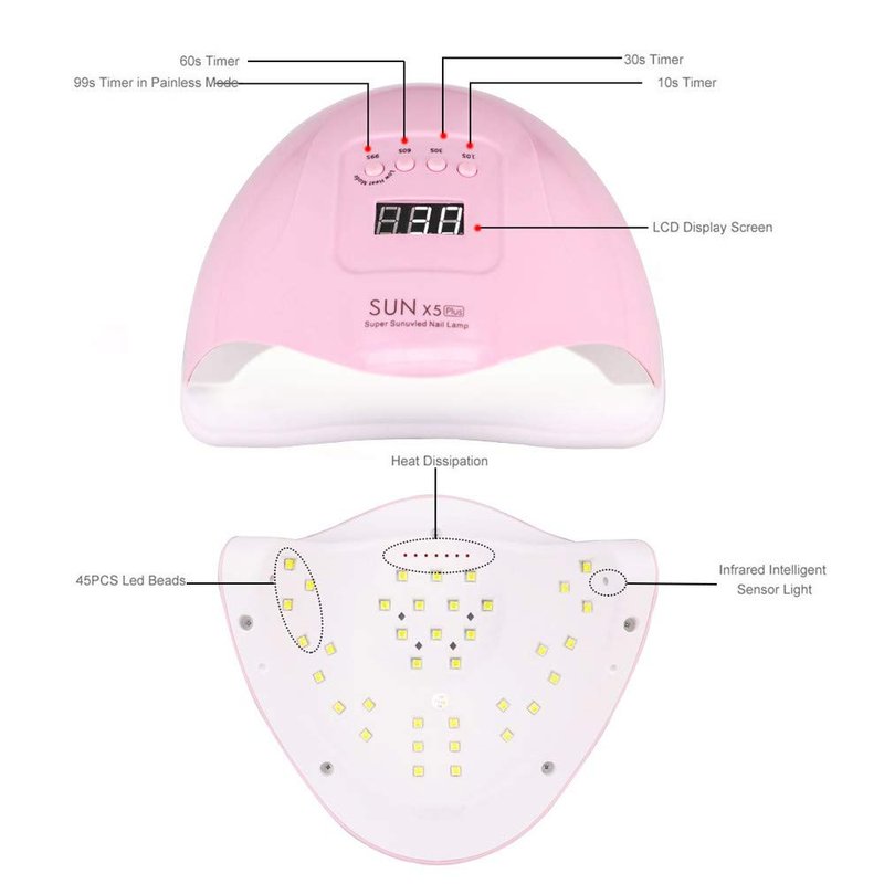 4. Please note that curing time vary based on gel polish brand. SUN x5plus UV LED nail lamp works well for all kinds of gel polishes, not for regular nail polish.