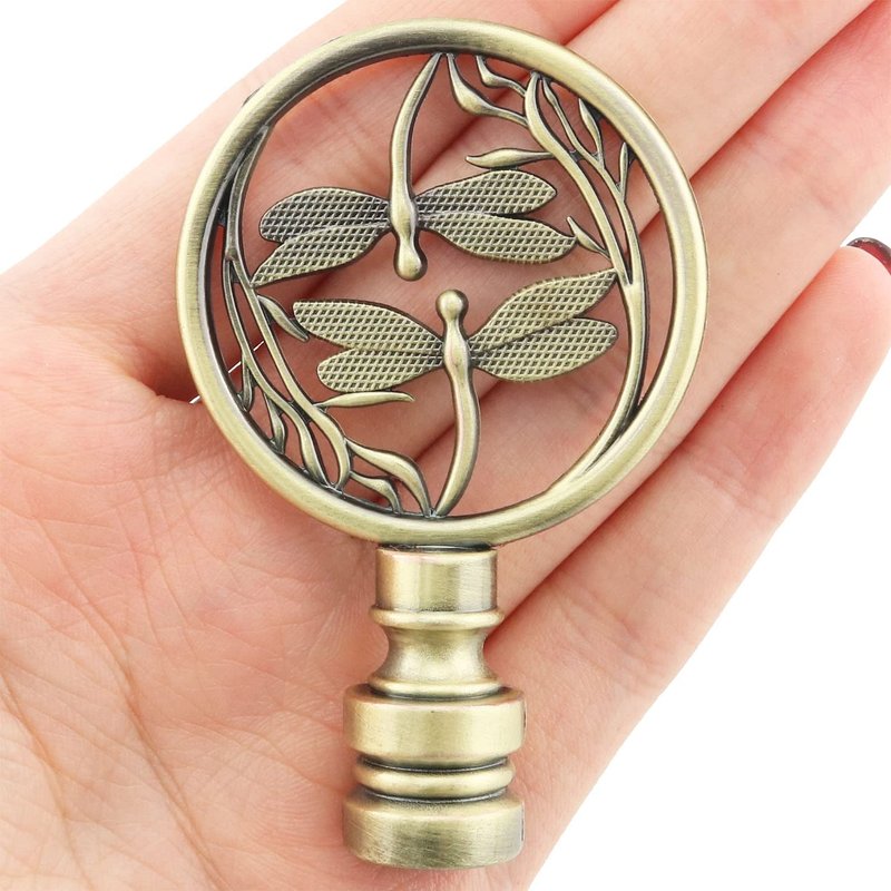 SJZBIN Lamp Finial Cap Knob Double Dragonflies Lamp Finials Hollowing Out Treatment Dragonfly Design Lamp Decoration for Lamp Shade, Bronze