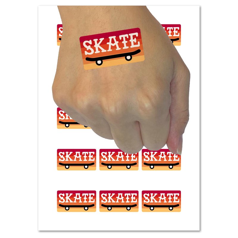 Skate Text on Skateboard Temporary Tattoo Water Resistant Fake Body Art Set Collection - 54 1" Tattoos (1 Sheet)