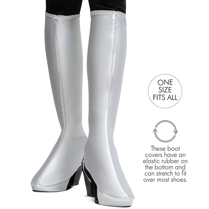 Skeleteen White Costume Boot Covers - Groovy Disco White Fabric 70s Hippie Fake Boots for Women and Girls Costumes