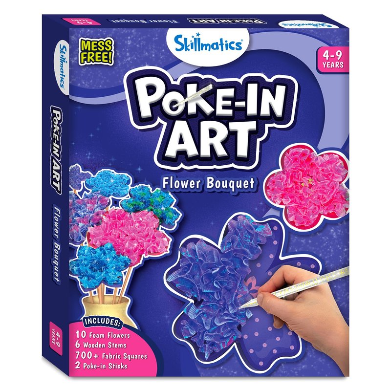 - POKE-IN ART ACTIVITY: This mess-free craft activity encourages creativity! Kids will make their own flower designs using fabric squares that are poked into foam to create petals and then mounted on wooden stems. Once complete, these beautiful DIY flowers can be arranged into a lovely bouquet.