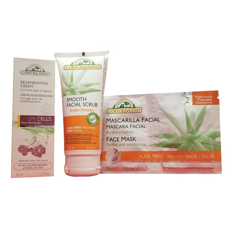 - A mild face scrub formulated with organic Aloe vera juice, to retain the skin’s moisture, and organic Lime extract to purify the skin.