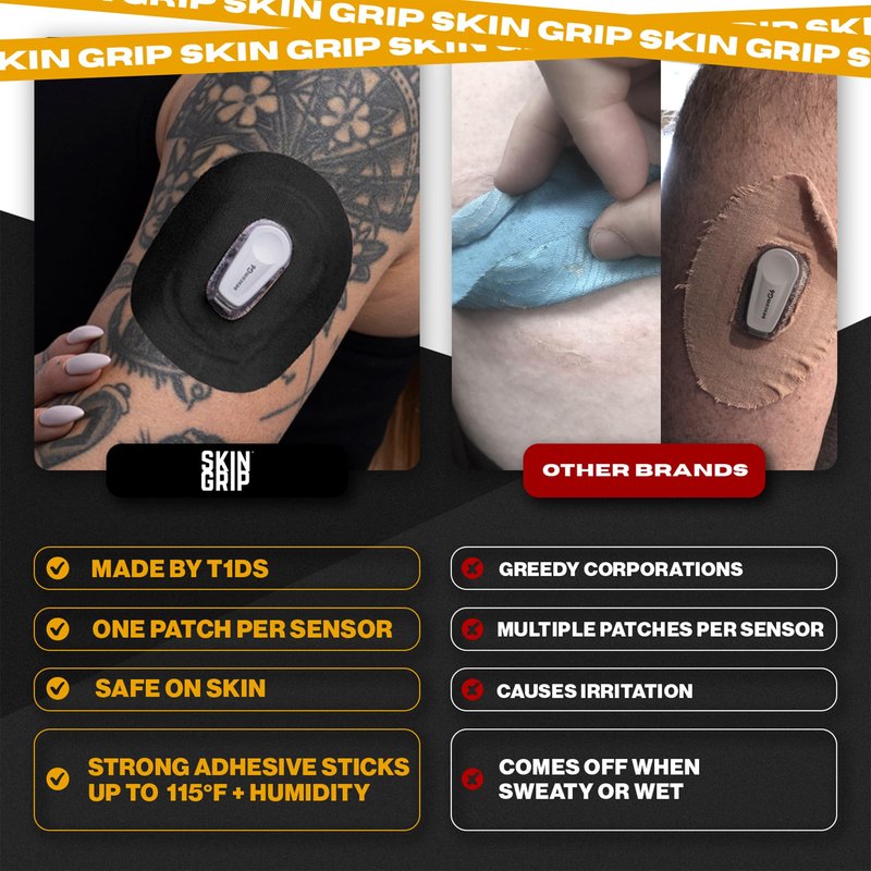 Individuals living with diabetes struggle to keep their glucose monitors inserted in their skin while living active lifestyles. Skin Grip makes strong adhesive tapes to keep monitors secured to the skin so that people with diabetes can participate in their favorite activities with peace of mind. Diabetes doesn't hold you back, and we believe that your CGM (continuous glucose monitor) shouldn't either. Skin Grip glucose monitor CGM adhesive patches hold your device firmly to your skin for 10 to 14 days. They work even while swimming, showering or exercising regularly. These premium diabetic overpatches are made from 100% high-quality rayon that is latex-free, zinc oxide-free, and hypoallergenic. Equipped with quick-dry technology, the CGM sensor patches are both waterproof and sweatproof, keeping your sensor free from moisture damage. The soft patch is comfortable & breathable which makes it suitable for all skin types with zero irritation, itching or discomfort. Our diabetic patches are produced in a high-quality facility and shipped from Utah. Skin Grip gives you the confidence to push the limits a little further because "diabetic" doesn't define you. We secure your sensors in the pool, shower, ocean, rain, through exercise, sweat, and all your other favorite activities because we believe that when individuals with diabetes feel fearless, they can accomplish the extraordinary.