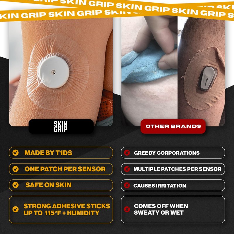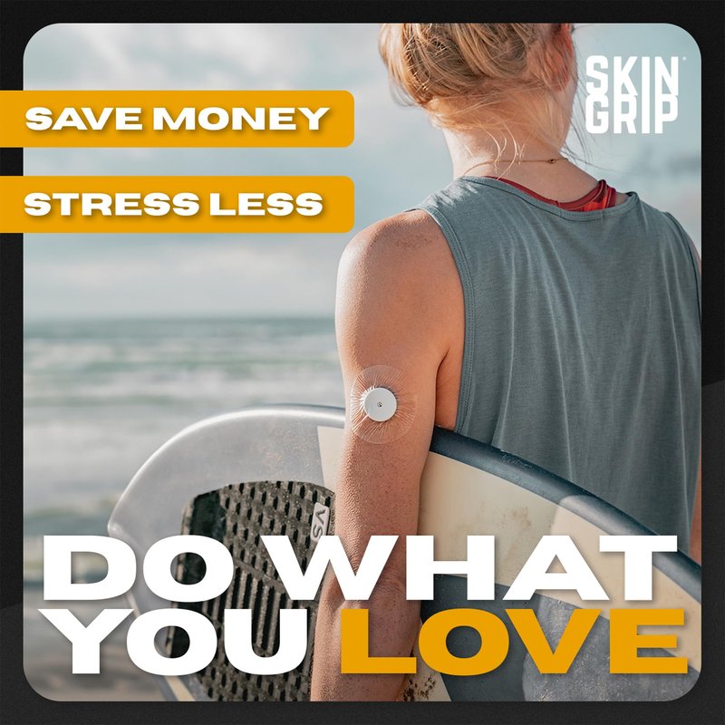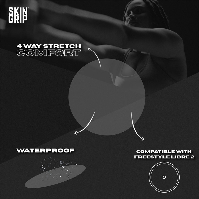 Individuals living with diabetes struggle to keep their glucose monitors inserted in their skin while living active lifestyles. Skin Grip makes strong adhesive tapes to keep monitors secured to the skin so that people with diabetes can participate in their favorite activities with peace of mind. Diabetes doesn't hold you back, and we believe that your CGM (continuous glucose monitor) shouldn't either. Skin Grip glucose monitor CGM adhesive patches hold your device firmly to your skin for 10 to 14 days. They work even while swimming, showering or exercising regularly. These premium diabetic overpatches are made from 100% high-quality rayon that is latex-free, zinc oxide-free, and hypoallergenic. Equipped with quick-dry technology, the CGM sensor patches are both waterproof and sweatproof, keeping your sensor free from moisture damage. The soft patch is comfortable and breathable which makes it suitable for all skin types with zero irritation, itching or discomfort. Skin Grip gives you the confidence to push the limits a little further because "diabetic" doesn't define you. We secure your sensors in the pool, shower, ocean, rain, through exercise, sweat, and all your other favorite activities because we believe that when individuals with diabetes feel fearless, they can accomplish the extraordinary.