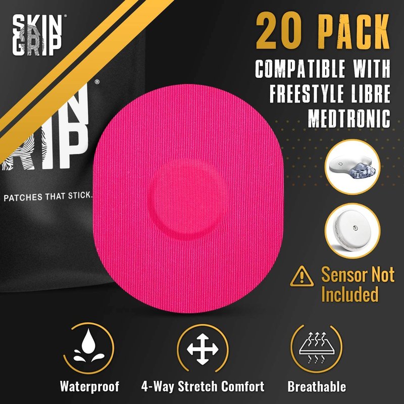 Skin Grip CGM Patches for Medtronic Guardian Sensor (20-Pack), Waterproof & Sweatproof for 10-14 Days, Pre-Cut Adhesive Tape, Continuous Glucose Monitor Protection(Pink)