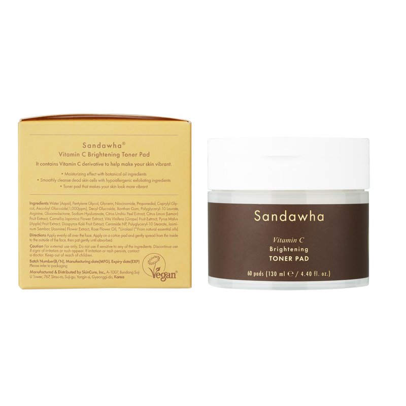 SKINCURE Sandawha Vitamin C Toner Pad - Vegan Korean Face Toner Pad - Radiant Glow & Revitalizing with 2% Ascorbyl Glucoside and Niacinamide - Mild Exfoliating with AHA, PHA, 60 Pads