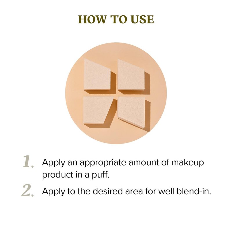 - How to Use - Place the lotion, cream, or foundation o the wedge sponges, and gently pat onto your skin to smooth pores and increase coverage, making the skin look smooth and matte with a perfect finish. Use these makeup sponge wedges to evenly apply your makeup or lotion base with a natural glow.