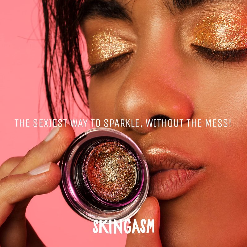 Skingasm All Over Glitter Balm - The Sexiest Sparkle - Glitter for Your Lips, Eyes, Face, Body & Hair - Cruelty- Free- Glitter Eyeshadow - Vegan Makeup -Leave The Lights On (Gold)