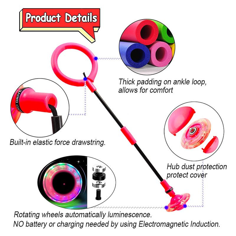 - ☀【Built-in Flash Wheel】Using the power of Electromagnetic Induction every time you skip it, the rotating wheel automatically produces a dazzling multi-color light show. ( No battery or charging needed ).