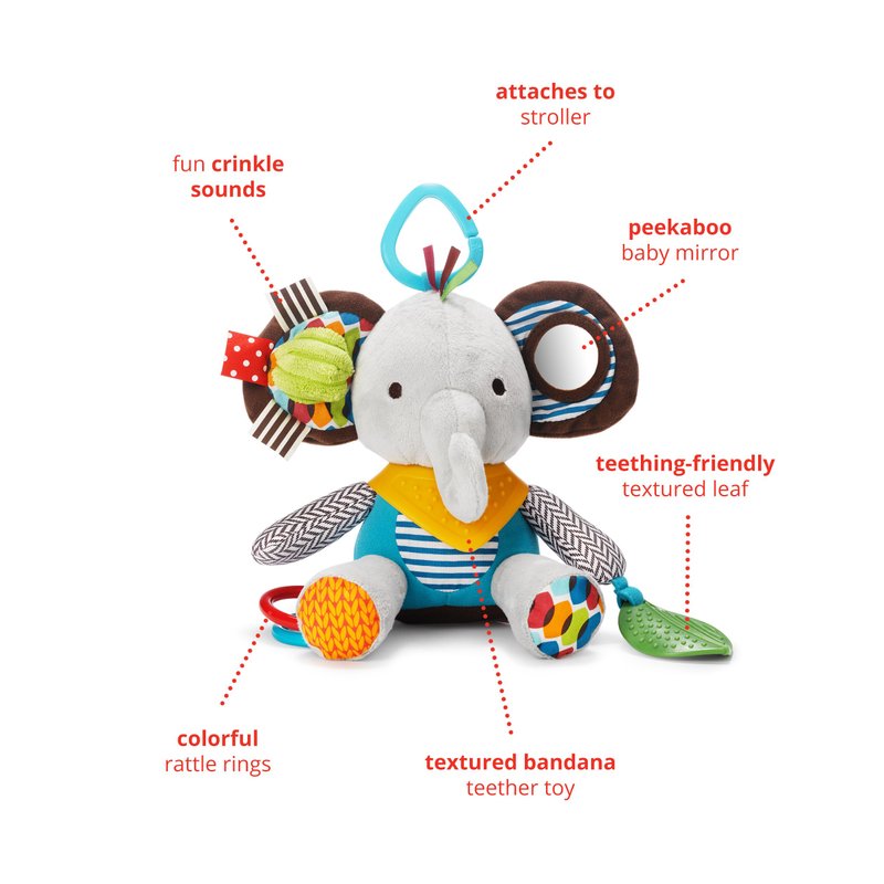 Skip Hop Bandana Buddies Baby Activity and Teething Toy with Multi-Sensory Rattle and Textures, Elephant