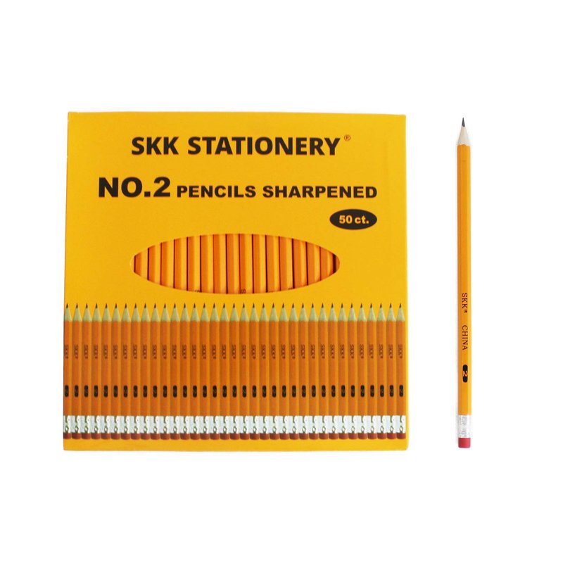 SKKSTATIONERY 50 Pcs Pre-sharpened pencils, Pencils Sharpened with eraser top, 2 HB pencil, 50/box