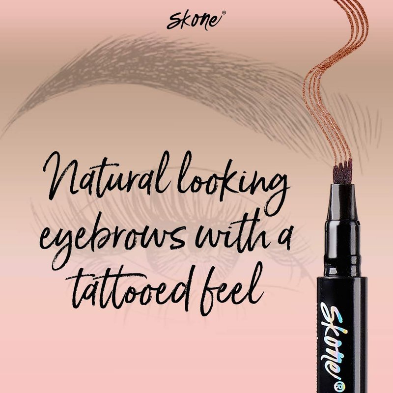 Skone Cosmetics | Brow Ink Pen | Jumbo Eye Brown Tattoo Eyebrow Pen Micro Fork Tip Applicator Eye Brow Pencil Dark Brown Semi Permanent Tint for Arching & Defining Brows