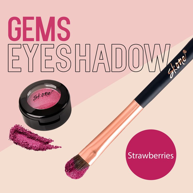 Skone Cosmetics Gems Eye Shadow, Highly Pigmented, Longwear Eye Makeup, Single Eyeshadow with Pro Shimmery Finish - Ultra-Blendable, Slightly Shimmer Shades - PinkEyeshadow - Strawberries