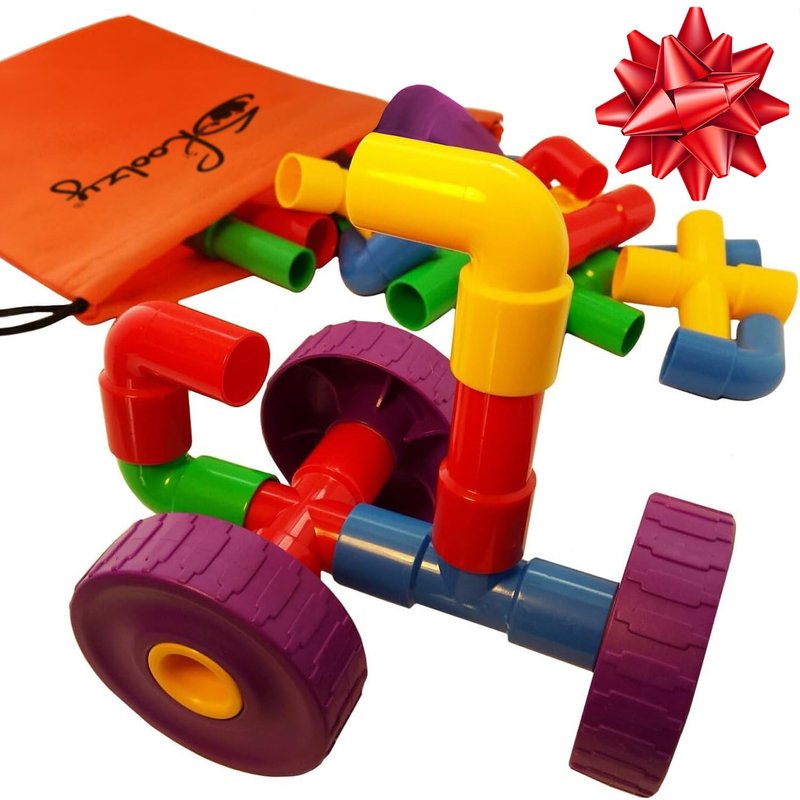 Skoolzy STEM Learning Pipe Tube 29 Piece Toys_and_Games Set, Educational Construction Building Blocks for ADHD & Autism for Baby, Kid Includes Wheels Pipes Joints and eBook