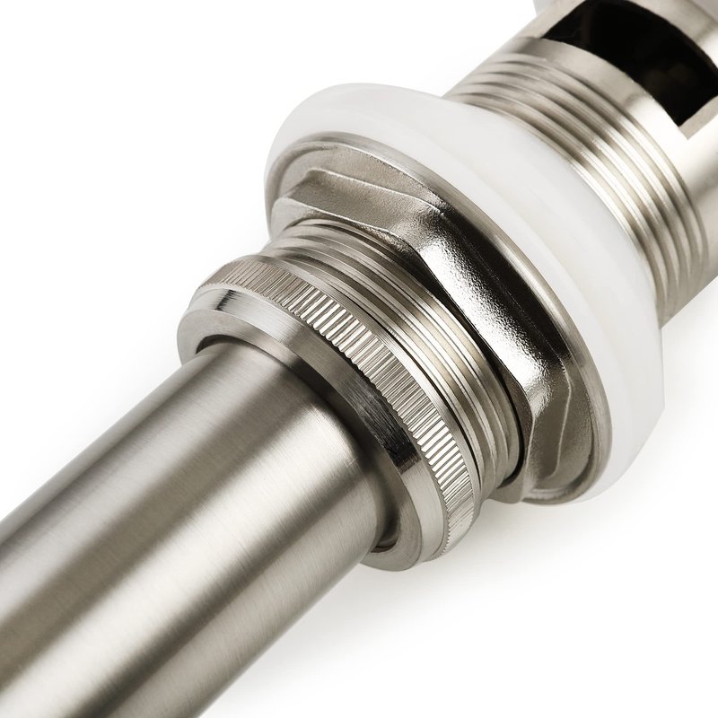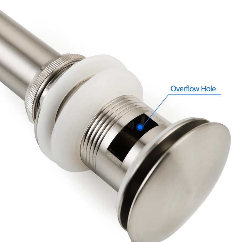 - Experience both practicality and beauty with this vessel sink drain pop up plug. Its brushed nickel finish reduces scratches and corrosion, making it easy to clean and saving you time and money.