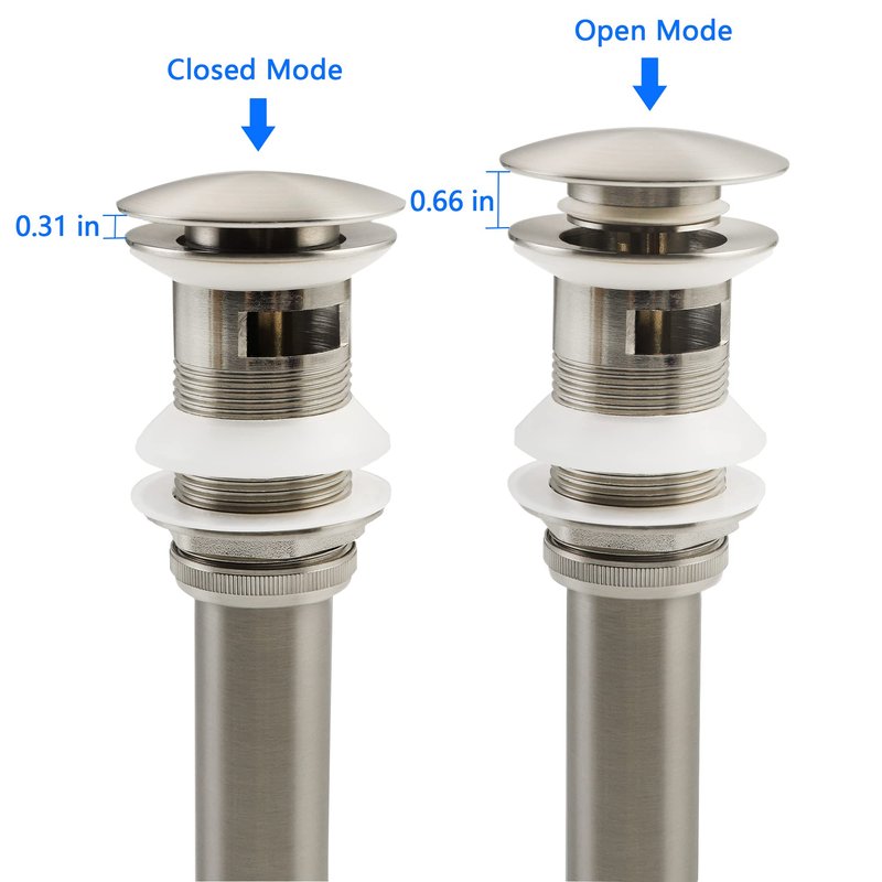 - Operate with ease using the spring-loaded push button of our pop up sink drain stopper. No lift rod required - simply push down the drain cover to open or close it.