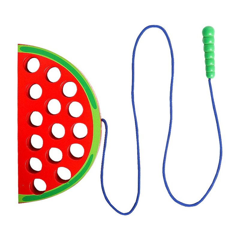 - FUN AND CREATIVE: The Wooden Lacing watermelon Toy is a simple, vivid red watermelon with smooth holes and green peel look so much delicious, let the hungry caterpillar eat it sooner. Help the string-attached caterpillar munches through the watermelon by threading in and out. Perfect for training and developing personal skills.