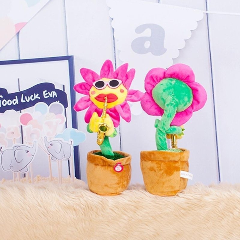 SKSTECH Musical Sing and Dancing Sunflower Soft Plush Funny Creative Saxophone Singing Toy (Pink)(Check Seller Name)