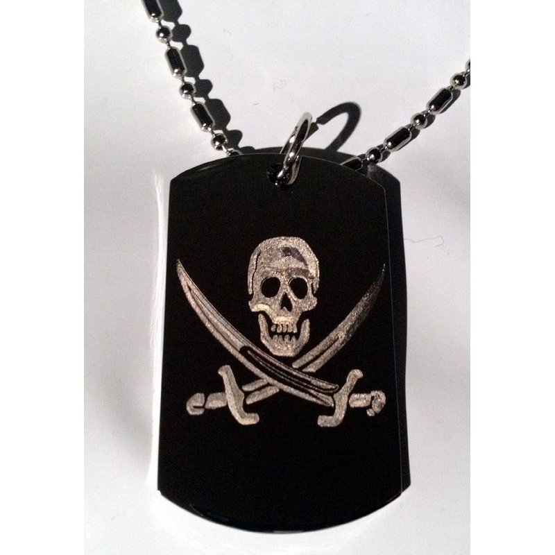 Skull Jolly Roger Pirate Cross Swords Logo Symbols - Military Dog Tag Luggage Tag Key Chain Metal Chain Necklace