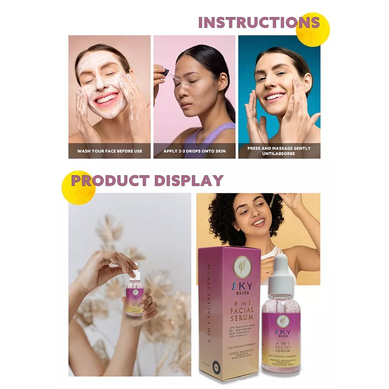 Sky Bliss Skin Serum | Hyaluronic acid | Vitamin C | Vitamin E | Niacinamide | Anti wrinkle | Face serum | Moisturizer | Anti aging | Skin care | 4 in 1 facial serum