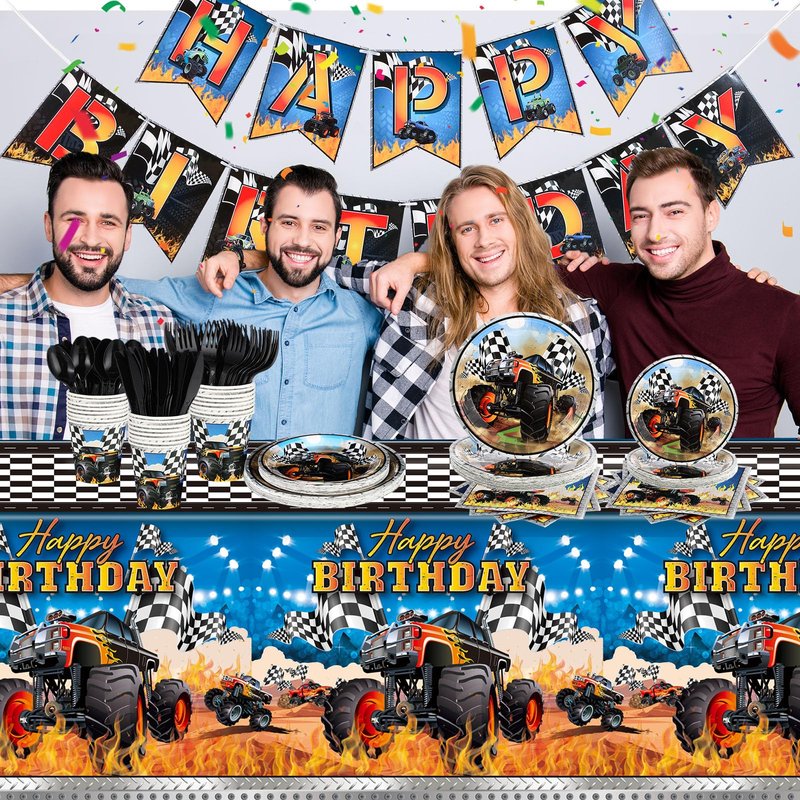 - Wide Application: the monster truck birthday party decorations are designed to light up your decorations; With the birthday banner, made of thick paper, you can decorate your walls, windows, or hall, and also suitable for truck party decorations, monster truck themed birthday party, race car theme parties, game party decorations
