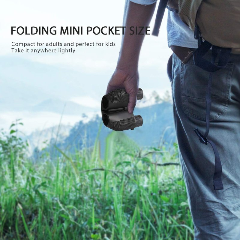 - 【 Foldable Lightweight Binoculars 】Design with dimension 4.2x4x1.9 inch, the portable binocular can be folded into palm or put in pocket carrying everywhere. Your ideal choice for theater, concerts, travel. ( Carrying case & Neck strap Included )